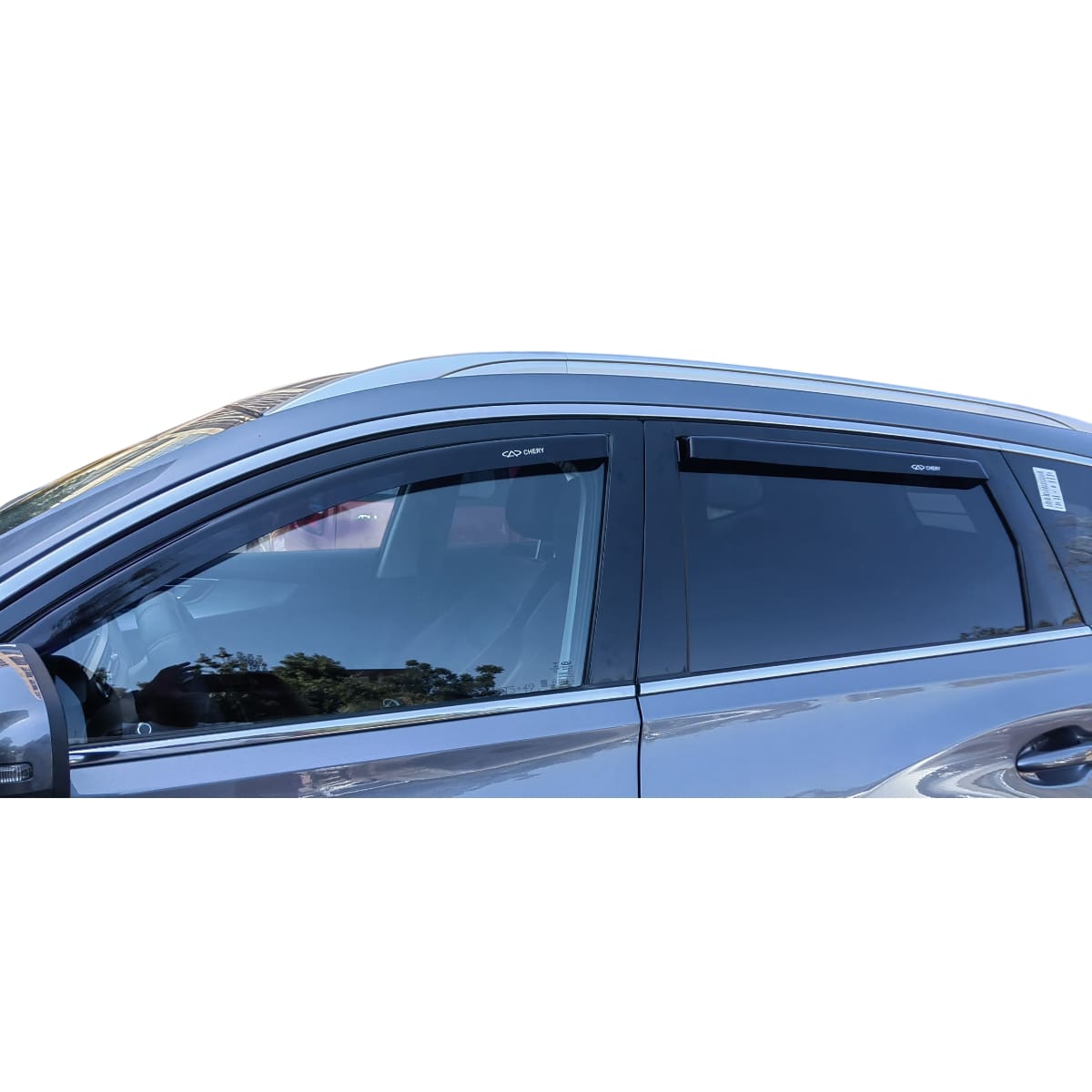 Juego de Aletas Botaaguas. Fabricación Nacional en Acrílico de alta Resistencia y Durabilidad, Proteja su Vehículo del agua Brindándole una mejor apariencia. Fácil Instalación, Logo serigráfico de la marca, Incluye Pegamento.
