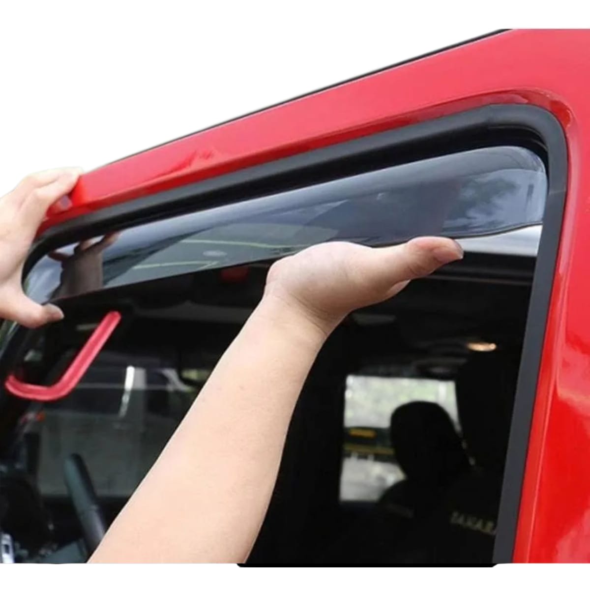 Juego de Aletas Botaaguas. Fabricación Nacional en Acrílico de alta Resistencia y Durabilidad, Proteja su Vehículo del agua Brindándole una mejor apariencia. Fácil Instalación, Logo serigráfico de la marca, Incluye Pegamento.